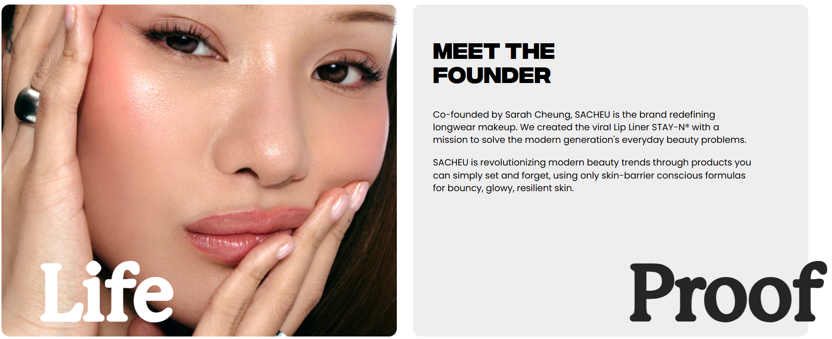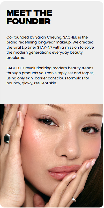 Life-Proof Beauty. Because makeup should work as hard as you do. You’ve got meetings to run, brunches to gab through, and existential crises to navigate—who has time to worry about smudged eyeliner?Using next-gen staining technology, SACHEU is all about creating makeup that stays put so you can stay present. Shop Now